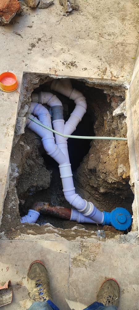 لوله کشی فاضلاب سایز 60 با تخریب